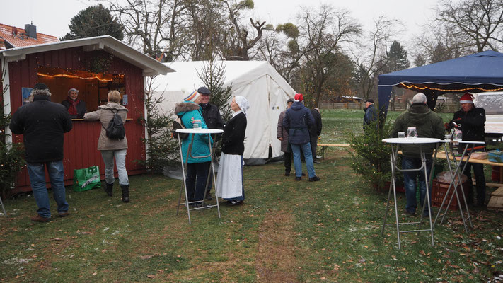 Im Backhaus wurde der Ofen angeheizt, so dass man sich hier auch mal aufwärmen konnte. Der Weihnachtsmann kam genau zu der Zeit, als ein paar Schneeflocken fielen und er hörte Gedichte und Wünsche der kleinen Gäste. Immer wieder gab es den Wunsch, dass es in Darlingerode solchen Adventsmarkt auch in Zukunft geben sollte. So wird es 2019 sein.
